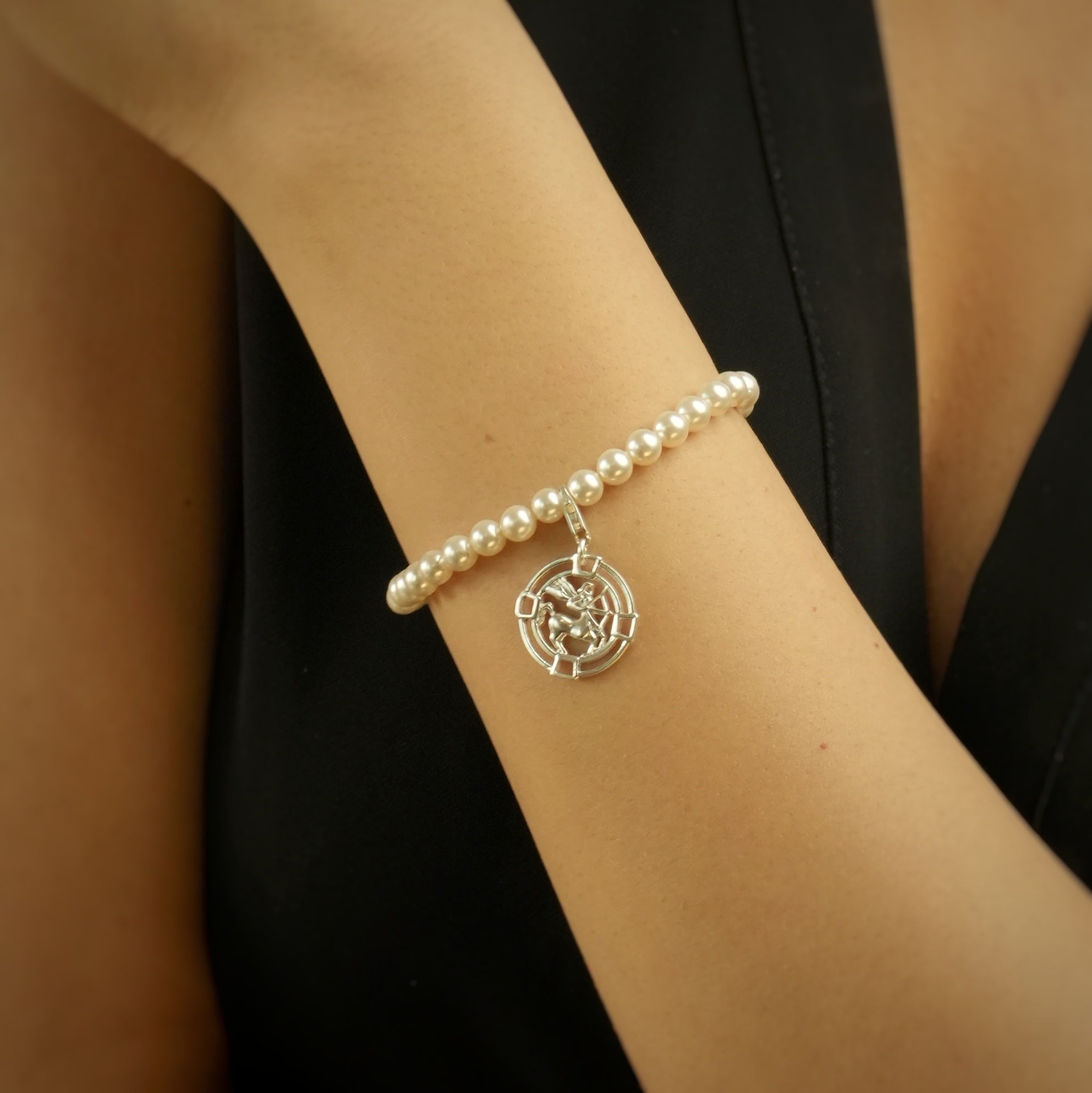 Sagittarius Pearl 92.5 Silver Bracelet – where elegance meets cosmic charm! This bracelet is a stunning fusion of cultured shell pearls paired with 92.5 Silver endings. The bracelet features a sleek chain crafted from premium 92.5 Silver, featuring a detachable Zodiac Charm based on your birth month.