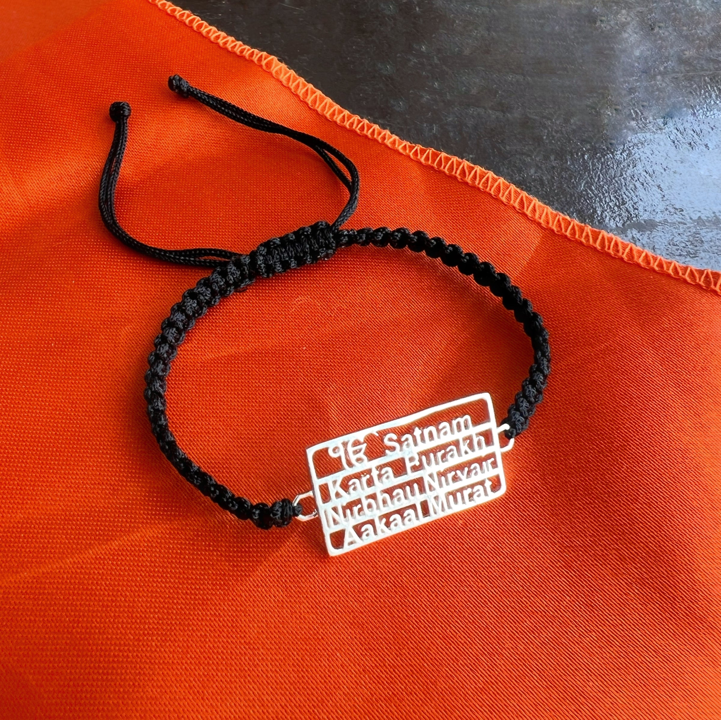 A verse that anchors the soul. Engraved in English with the Mool Mantar—the powerful opening of the Guru Granth Sahib—this bracelet captures the essence of divine truth and timeless grace. Handcrafted in BIS Certified 92.5 silver and tied with a strong black braided cord, it’s a daily reminder of your connection to the Creator—fearless, formless, and forever present.